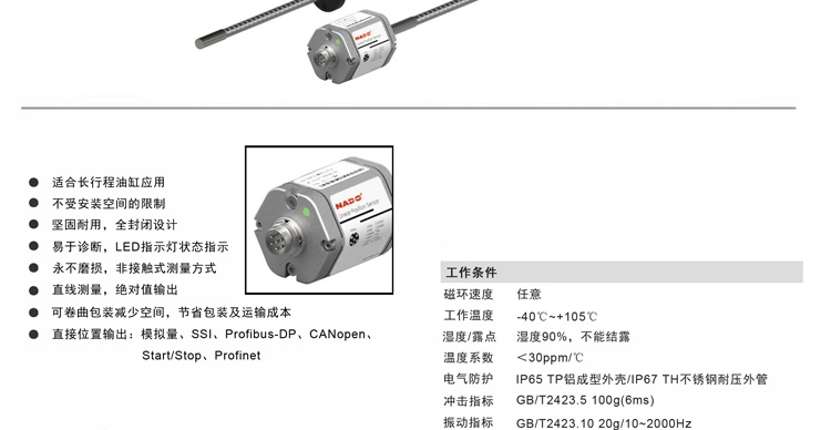 ●直接位置输出:模拟量、SSI、Profibus-DP、CANopen、Start/Stop;